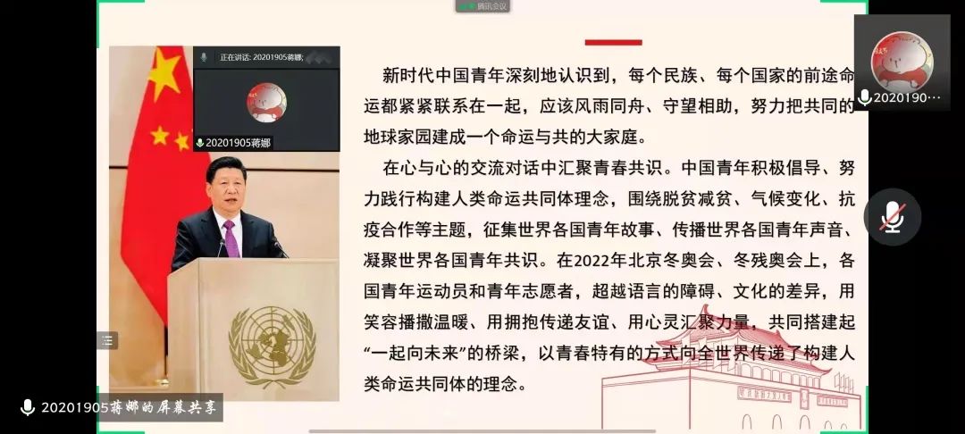 本次会议通过PPT讲解和观看新闻视频等多种形式相结合,向我们生动讲述了《新时代的中国青年》白皮书专题活动的主要核心内容,深入学习贯彻习近平新时代中国特色社会主义思想。我们广大青年学生要肩负历史使命,坚定前进信心,立大志、明大德、成大才、担大任,努力成为堪当民族复兴重任的时代新人,让青春在为祖国、为民族、为人民、为人类的不懈奋斗中绽放绚丽之花。