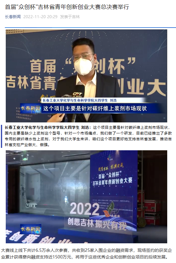 探索创新梦,锐意求进取,在科创竞赛领域,该同志结合吉林省碳纤维应用领域痛点问题,将所学知识应用于实践中,并且在实践中不断思考,解决实际问题。截至今日,该同志作为项目负责人累计获得第十八届“挑战杯”全国大学生课外学术科技创新竞赛二等奖,第九届中国大学生高分子材料创新创业大赛,第六届中国复合材料学会大学生科技创新竞赛二等奖等国家级奖项6项;获2022“挑战杯”吉林省大学生创业计划竞赛,第八届“互联网+”吉林省大学生创新创业大赛银奖,吉林省青年创新创业大赛一等奖等省级奖项6项;校级奖项20余项,在科创报国中镌刻最亮“人生印记”。在该同志的模范带头引领下,院内同学的参赛热情大幅提高,同学们的锐意创新、勇于实践的创新精神得到锻炼,贯彻落实了“以赛促学”的育人理念。该同志所负责的“浆”心独运团队,为解决社会重大刚需问题提供了重要的解决方案,相关成果也被长春日报,掌上长春等媒体报道。