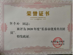 作为一名共产党员,她在疫情期间始终冲在前线,在学校封校期间,为同学们分发三餐,每天为寝室消毒,背着沉重的消毒水,不遗漏一个寝室,保障同学们有干净的卫生环境。寒假期间,参与学校“学伴+”活动,为通化市防疫人员子女辅导功课,累计志愿服务时长200小时。