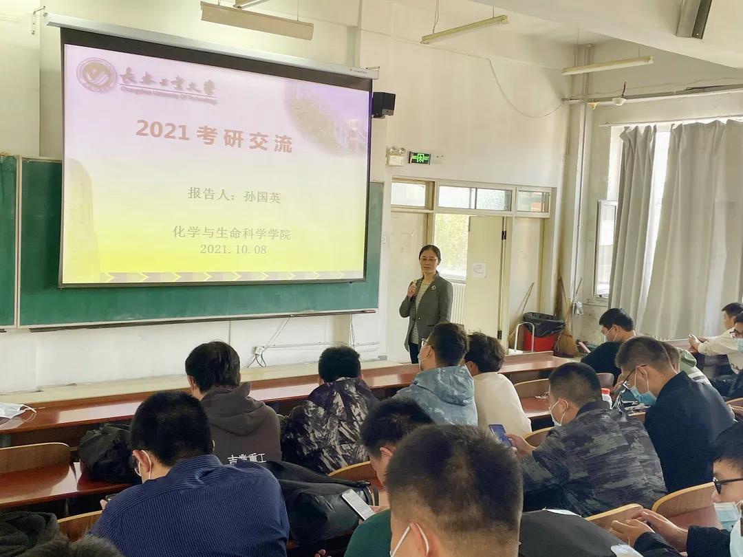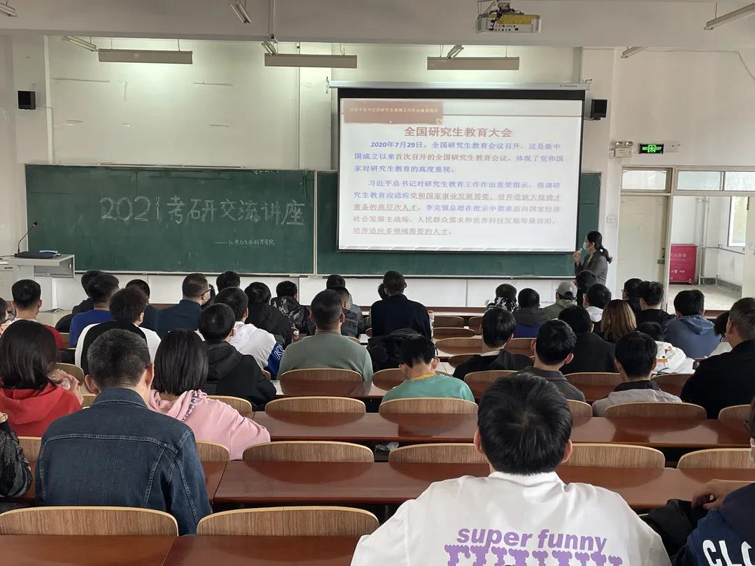 新闻网讯(通讯员 臧颖)为进一步加强同学们对研究生入学考试的认识,了解前沿的就业形势、增强考研斗志,学院于10月8日在南湖综合楼四楼举办了考研交流会。此次交流会由副院长孙国英主讲,辅导员侯天放及学院备战考研的全体同学参加了会议。