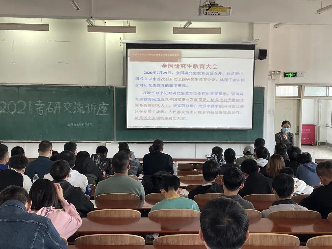 会上,孙国英副院长从近年考研情况介绍、学院近年考研及招生情况、学院学位授权点建设情况、考研的几点建议等四个方面向同学们系统介绍了考研的基本情况及威廉希尔官网考研基本信息,并提醒同学们要密切关注相关学校的网站发布的信息,及时地了解相关学校的基本情况,并针对考试类型的变化及时作出相关调整。最后孙国英副院长结合自己之前考研的经验给所有意愿参加考研的同学们指明了大概的学习方向和关注角度,同时孙国英副院长希望意愿考研的同学们能够珍惜时间,把握机会,规律作息,为考研做足准备,以积极乐观的心态迎接考研这一巨大挑战。