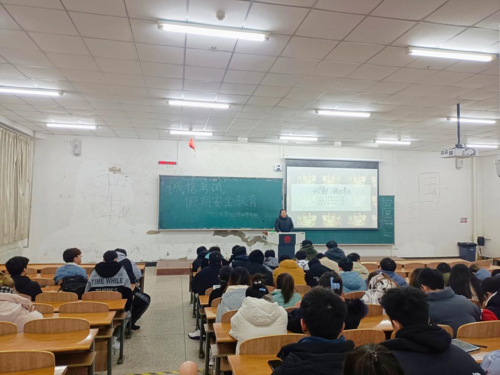 新闻网讯(通讯员 杨芷若)为了营造良好的考试氛围,形成良好的诚信之风,增强学生的安全防范意识,威廉希尔官网于12月12日在北湖西区西阶101教室开展以“诚信考试和假期安全教育”为主题的年级大会,2020级辅导员张烨老师主持此次大会,全体20级学生参加。