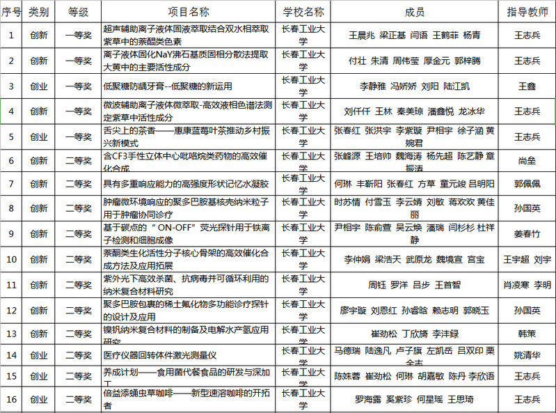 本届大赛自2019年9月启动,历时1年;覆盖全国32个省(直辖市)、自治区的302所高校3687支队伍;14000余名学生参赛;经过资格审查、网络评审、“云”答辩,共评选出学生和指导教师特等奖38项、一等奖395项、二等奖544项、三等奖674项。我校通过层层选拔,激烈的角逐,最终,由威廉希尔官网王志兵老师指导,王晨兆、梁正基等同学完成的《超声辅助离子液体固液萃取结合双水相萃取紫草中的萘醌类色素》项目,付壮、朱清等同学完成的《离子液体固化NaY沸石基质固相分散法提取大黄中的主要活性成分》项目,刘仟仟、王林等同学完成的《微波辅助离子液体微萃取-高效液相色谱法测定紫草中活性成分》项目荣获创新组一等奖;由王志兵老师指导,张春红等同学完成的《舌尖上的茶香——惠康蓝莓叶茶推动乡村振兴新模式》项目,以及由王鑫老师指导,李静雅等同学完成的《低聚糖防龋牙膏--低聚糖的新运用》项目荣获创业组一等奖。
