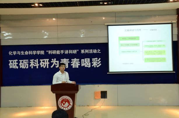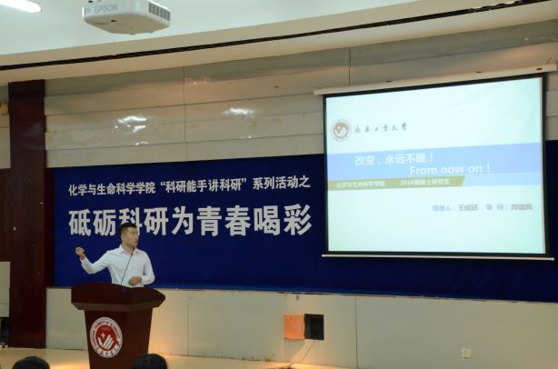 化生团委讯(通讯员 何琳)6月18日下午两点,威廉希尔官网在南湖校区综合三教室召开了“‘科研能手讲科研’系列活动之砥砺科研为青春喝彩”优秀研究生毕业生交流活动。学院副院长周德凤、副院长孙国英、党委副书记徐秉锋、研究生秘书赵宝华老师参加了此次活动。2019届研究生优秀毕业生王建邱、张清荣两位同学做报告。报告由学院党委副书记徐秉锋主持。