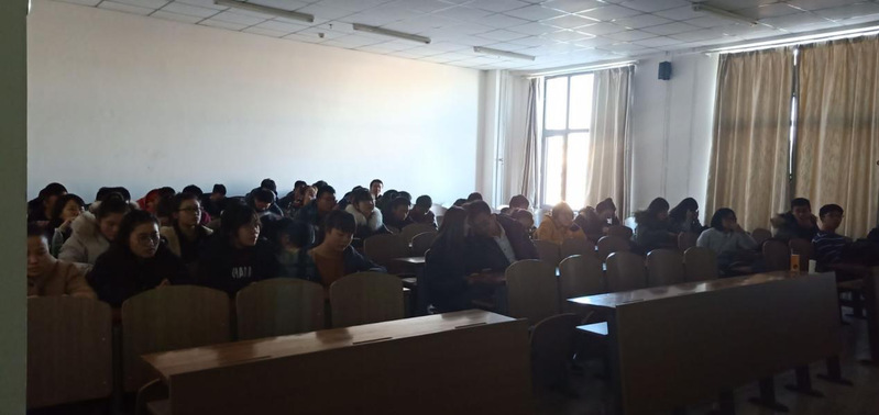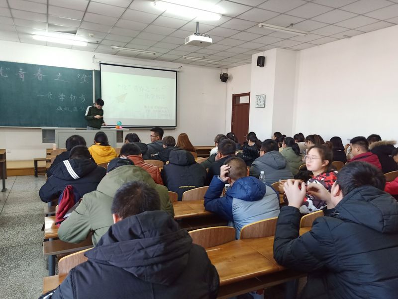 活动开始,鞠东岩先是告诉同学们所处的化学世界以及让同学们认识化学对人类的影响以及意义;其次,讲述了化学的发展史以及化学的未来,在这过程中,同学们积极发言、踊跃参与。最后,本次活动在鞠东岩对就业问题的讲述中落下帷幕。