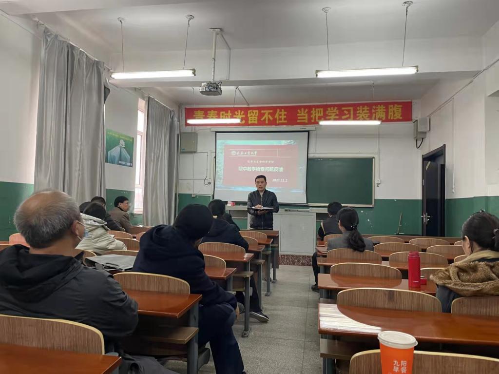 会上,副院长王志兵针对期中教学检查期间存在的问题一一进行了强调和说明,并讲解了试卷、实习、实验和本科毕业论文的档案规范化管理要求,要求大家针对问题予以整改。最后,学院党委书记于洪和院长王哲做了总结讲话,要求全院教师齐心协力,落实整改,更好的迎接2023年本科教学水平评估工作。