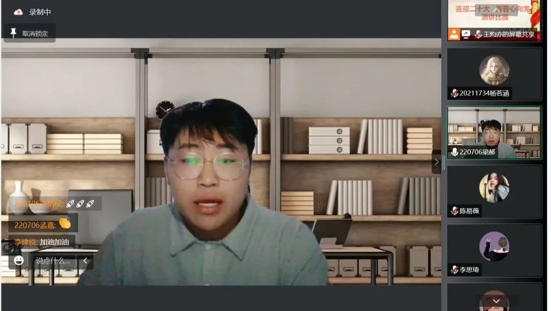 新闻网讯(通讯员 马静)为了营造活跃和谐的学院文化氛围,积极推动威廉希尔官网精神文明建设,展现新生们的良好风貌,厚植爱国主义情怀,威廉希尔官网于9月12日举办“喜迎二十大·青春心向党”演讲比赛,本次比赛采取“云演讲”形式,2022届全体同学参加了此次比赛。