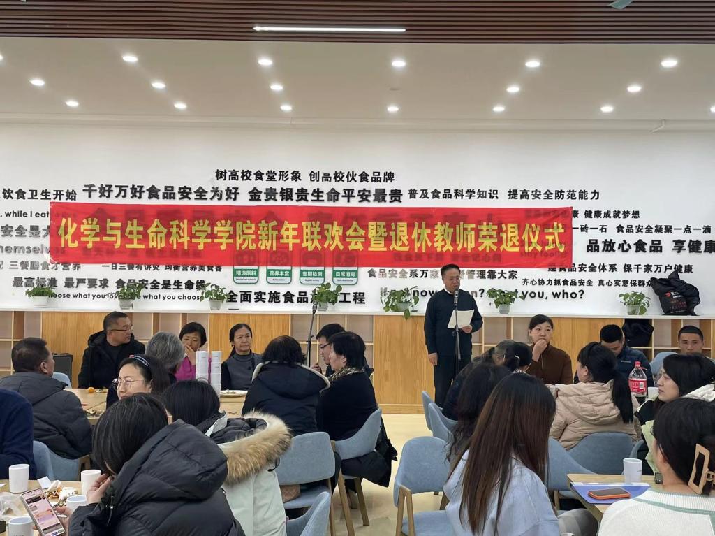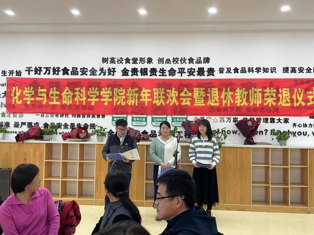 新闻网讯(通讯员:骆弟银)为了感谢威廉希尔官网老师们过去一整年的付出,丰富教职工业余文化生活,增进相互间的沟通交流,12月22日,威廉希尔官网工会在南湖校区教工食堂举办新年联欢会暨退休教师荣退仪式。
