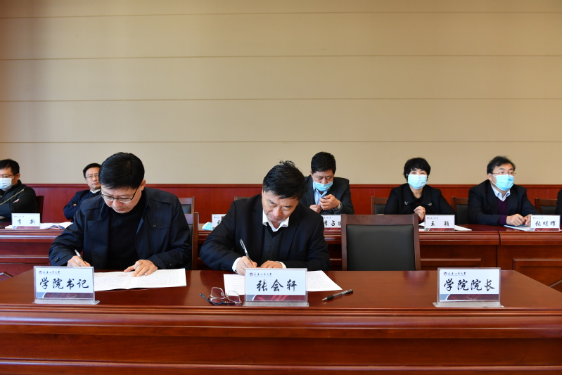 张会轩与威廉希尔官网党委书记于洪签订了2021届毕业就业目标责任书。