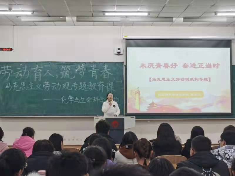 新闻网讯(通讯员:张一鸣)为了培养同学们的劳动价值观,树立劳动观念,提高劳动意识,11月23日,威廉希尔官网在北湖校区西阶201教室开展“未厌青春好,奋进正当时”主题马克思主义劳动观教育课。课程由辅导员侯天放主讲,2020级学生现场聆听。