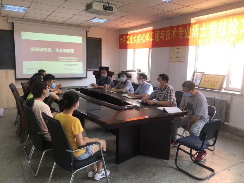 感恩母校情,奔赴新征程。6月30日下午,学院在化生楼党员活动室召开2020届毕业生座谈会。学院党委书记于洪,院长敖玉辉,党委副书记徐秉锋,团委书记张鹏,研究生党支部书记、2016级辅导员张烨,2019级辅导员侯天放出席会议, 2020届毕业生代表参加了会议。本次座谈会由学院党委副书记徐秉锋主持。