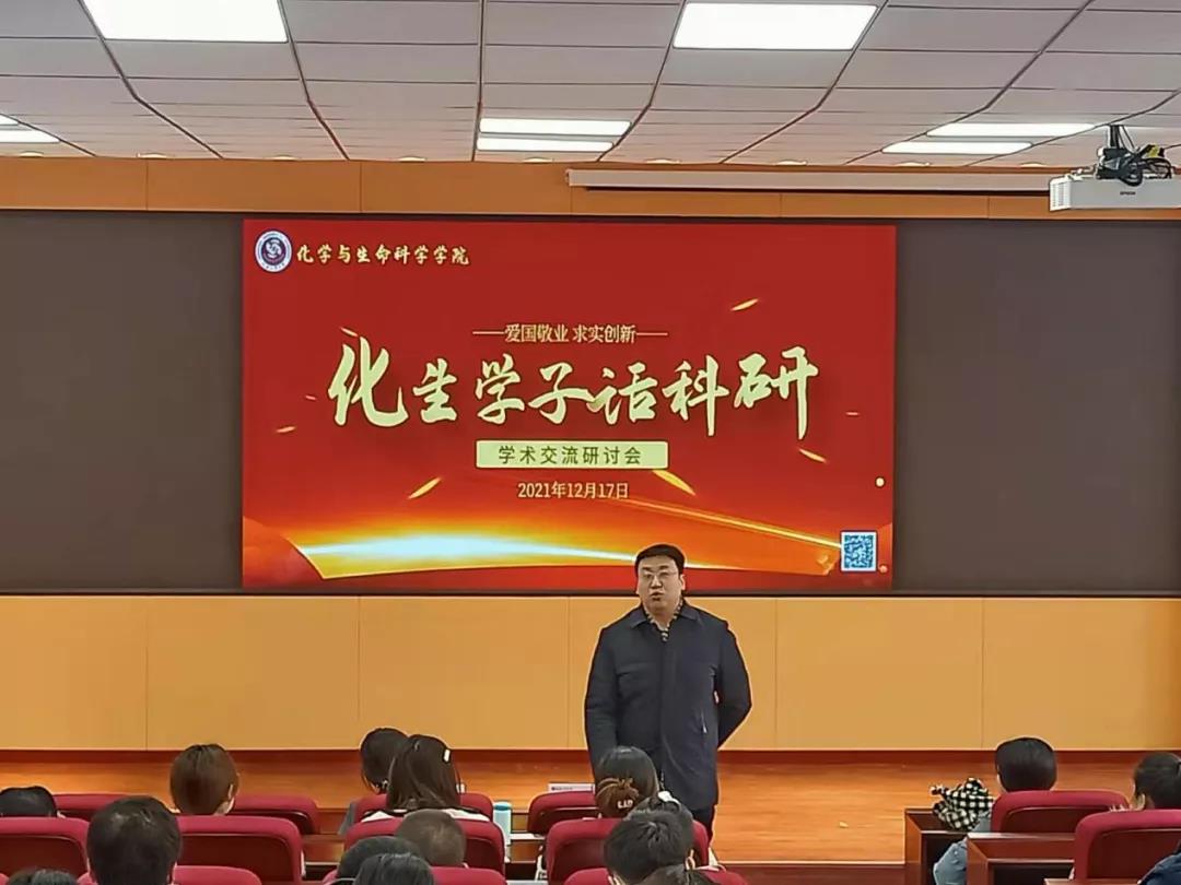 2021年12月17日,威廉希尔官网在南湖校区综合楼举办了第一届“化生学子话科研”学术交流研讨会,学院党委副书记徐秉锋、学院副院长孙国英、学院全体研究生参加了此次活动。